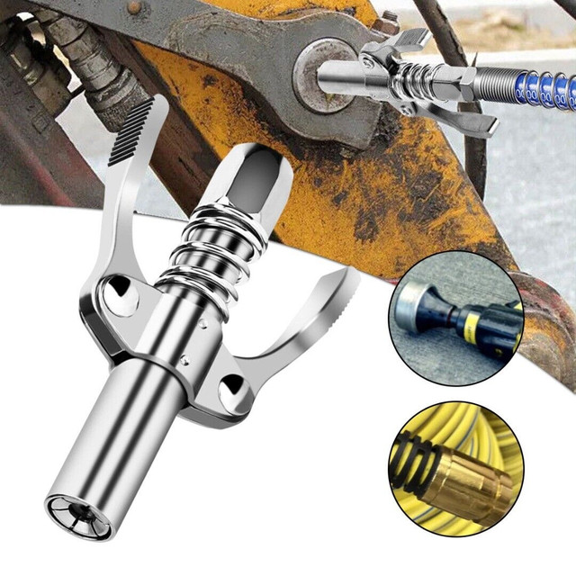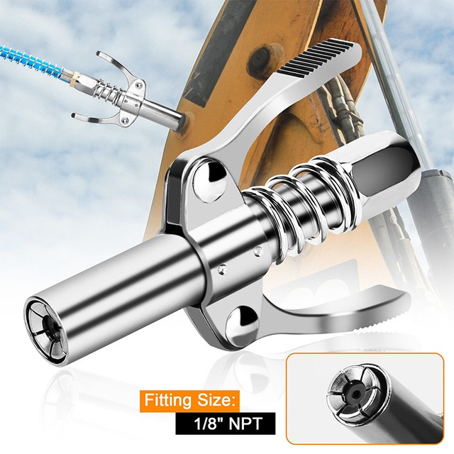 Представляємо вашій увазі головку шприца мастила преміум-класу (Germany Quality) - ідеальний інструмент для професійного технічного обслуговування. Сумісність із низкою стандартних розмірів і висока якість виконання роблять цю головку незамінною для роботи з різними видами обладнання. Завдяки універсальній конструкції, вона підходить для використання в найрізноманітніших умовах.